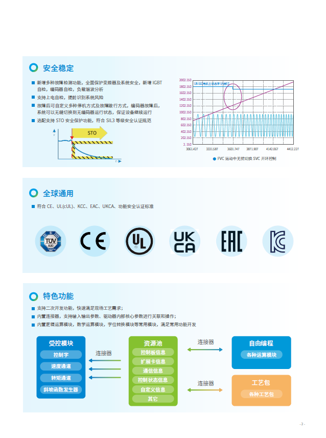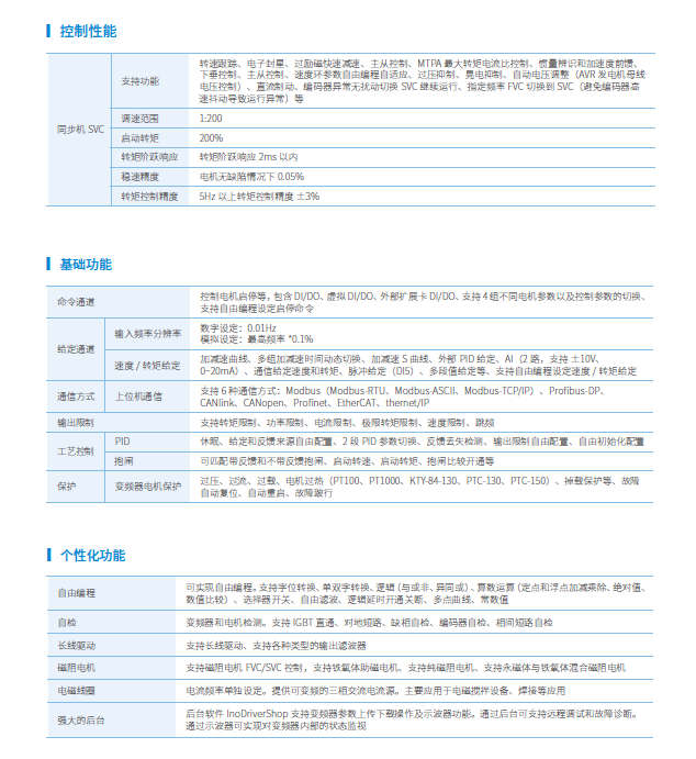 支持功能安全STO,故障跛行,位置控制,抱閘控制,自由編程,張力應用,風機/水泵等應用,令變頻器適用于各種應用場景