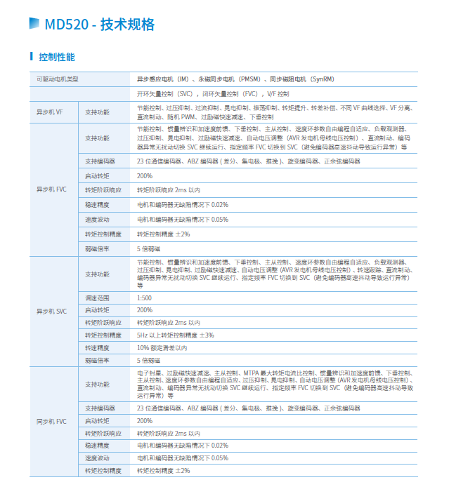 匯川變頻器MD520高性能矢量型永磁同步電機專用